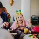 Det erbjuder en frukostbuffé dagligen. Det erbjuds diner i restaurangen Le Jardin de l'Esterel. Gästerna på detta boende kan upptäcka Saint-Raphaëls sevärdheter och testa aptitretare och hamburgare, som serveras i lounge baren.
